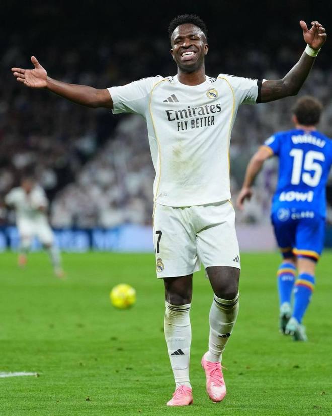 比赛开始后,皇马牢牢掌控场上球权。第11分钟,皮塔奇前场抢断制造杀机,维尼修斯单刀直入禁区左侧,一脚推射被门将索里亚用脚尖挡出,皮球擦柱而出,错失打破僵局良机。